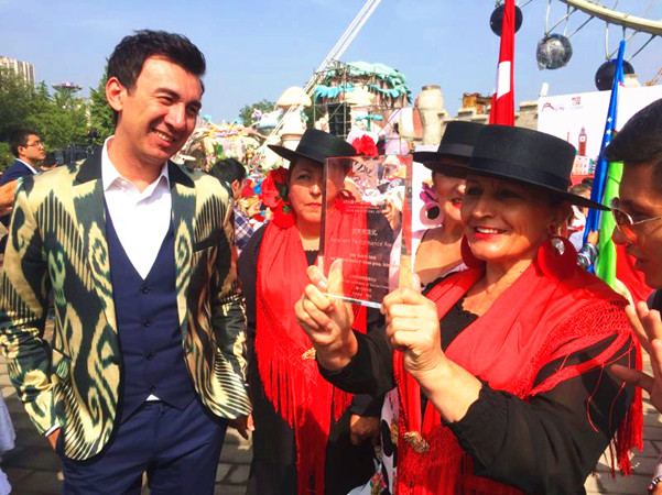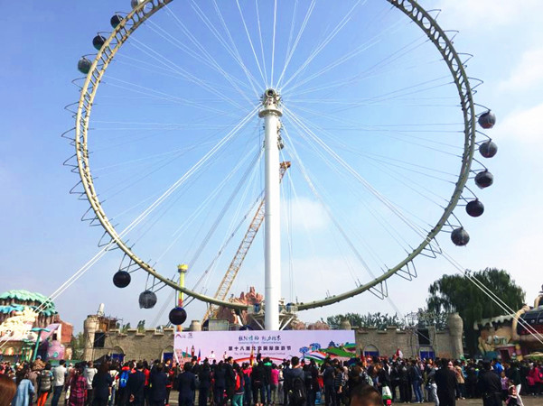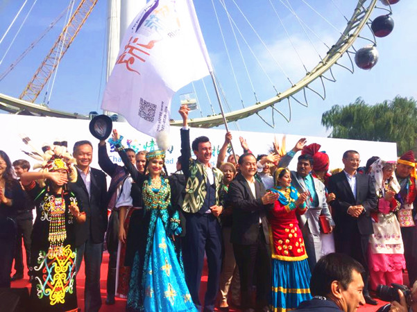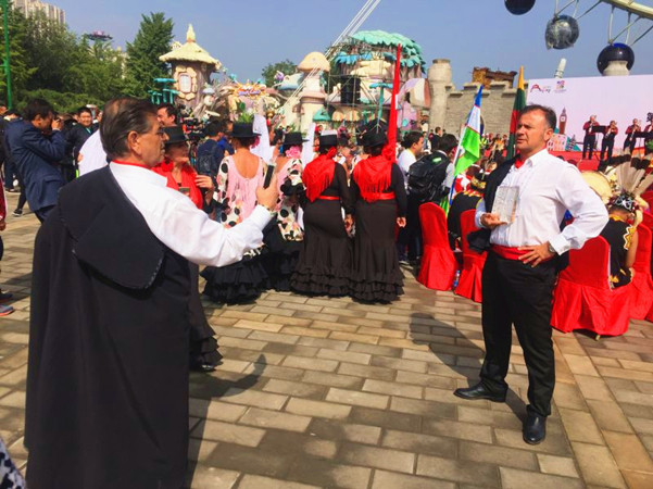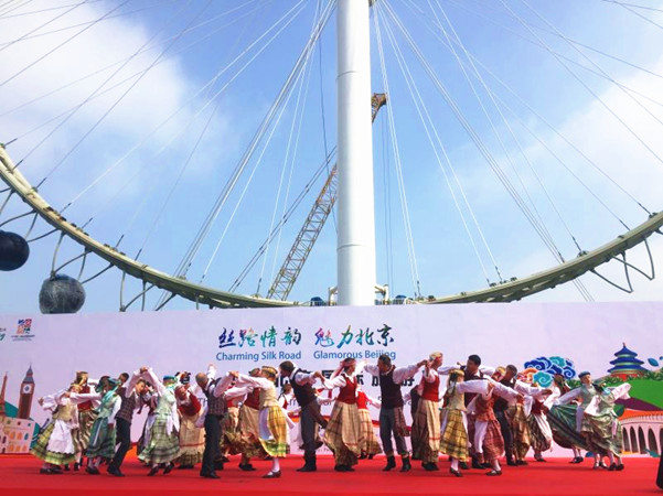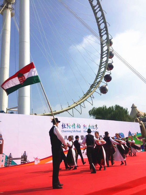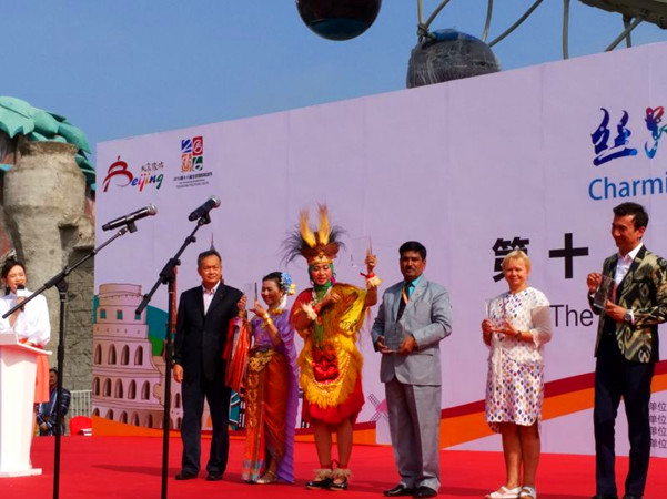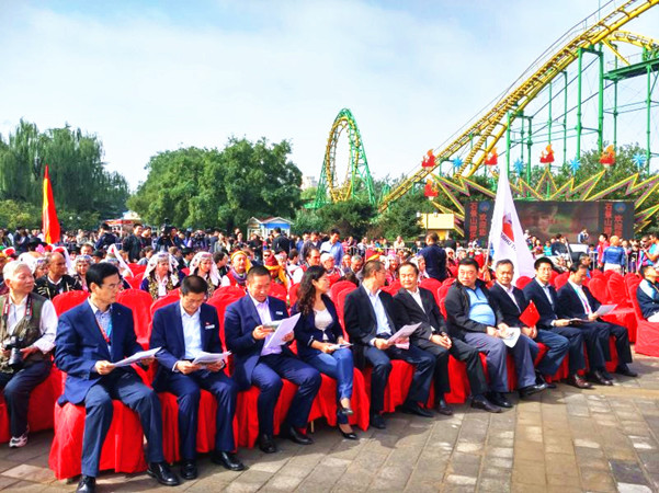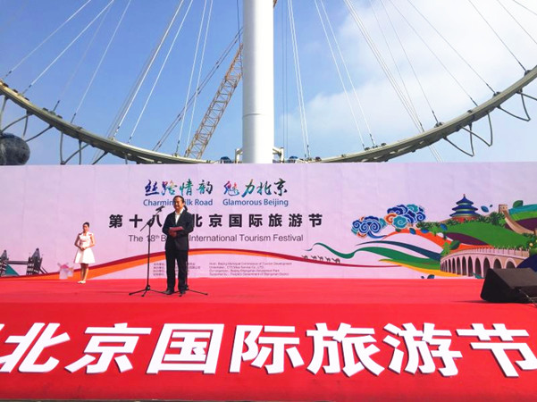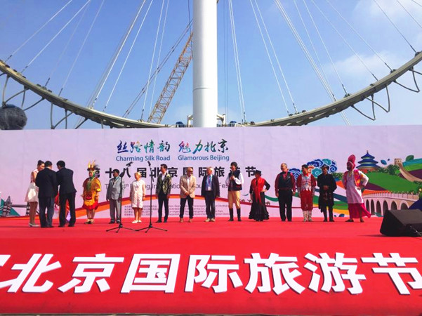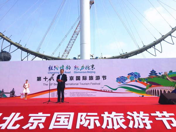 承办的第18届北京国际旅游节以“丝路情韵魅力北京”为主题,在北京石景山游乐园闭幕。一场盛大的闭幕式狂欢演出,给为期5天的国际旅游节画上了圆满的句号。来自美国、西班牙、土耳其、匈牙利等12个国家的300余名演员身着盛装,再次展示出各个国家的民族风情。北京市旅游发展委员会主任宋宇、副主任于德斌、石景山区政府副区长肖平、石景山区旅游委主任宋平、中旅总社常务副总经理张士刚、