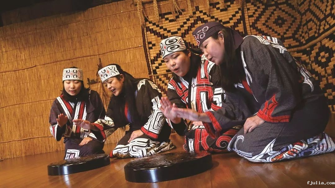 阿伊努传统艺术使用阿伊努族传统乐器演奏的乐曲,配合民歌、舞蹈,是北海道代表性的传统文化之一。现在也有将传统音乐融合现代音乐进行表演的新型乐队。