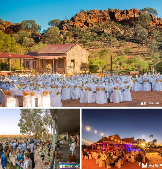 奥拉米纳站农庄地处辛普森沙漠边缘,距离爱丽斯泉仅30公里,独享600英亩私有土地。私人木屋和营地被各类本地野生动植物、鸟类、步道和自然景观所环绕宴会场地可容纳500人就坐,设置在充满小镇电影布景情调,并以内陆浩瀚星空为幕布的红色沙漠土地上。