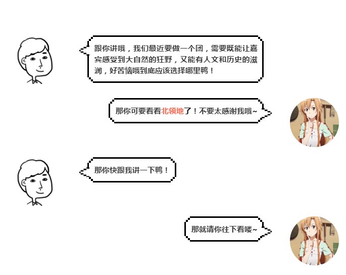 北领地提供有各式考察项目,其中包括场馆参观、住宿体验、文化活动、与北领地激励演讲人举行商务会议、在独特的户外功能场馆享用北领地特色晚餐、与北领地行业合作伙伴构建社交网络等。