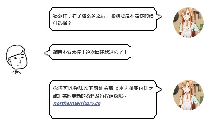 北领地是一片充满精彩活动与观光景点的广袤地域,共有两个风格迥异的地区供您探索:北部的北端地区(Top End)和南部的红土中心(Red Centre)。探索一个或所有地区,你的团组都将获得超值的北领地度假体验哦~