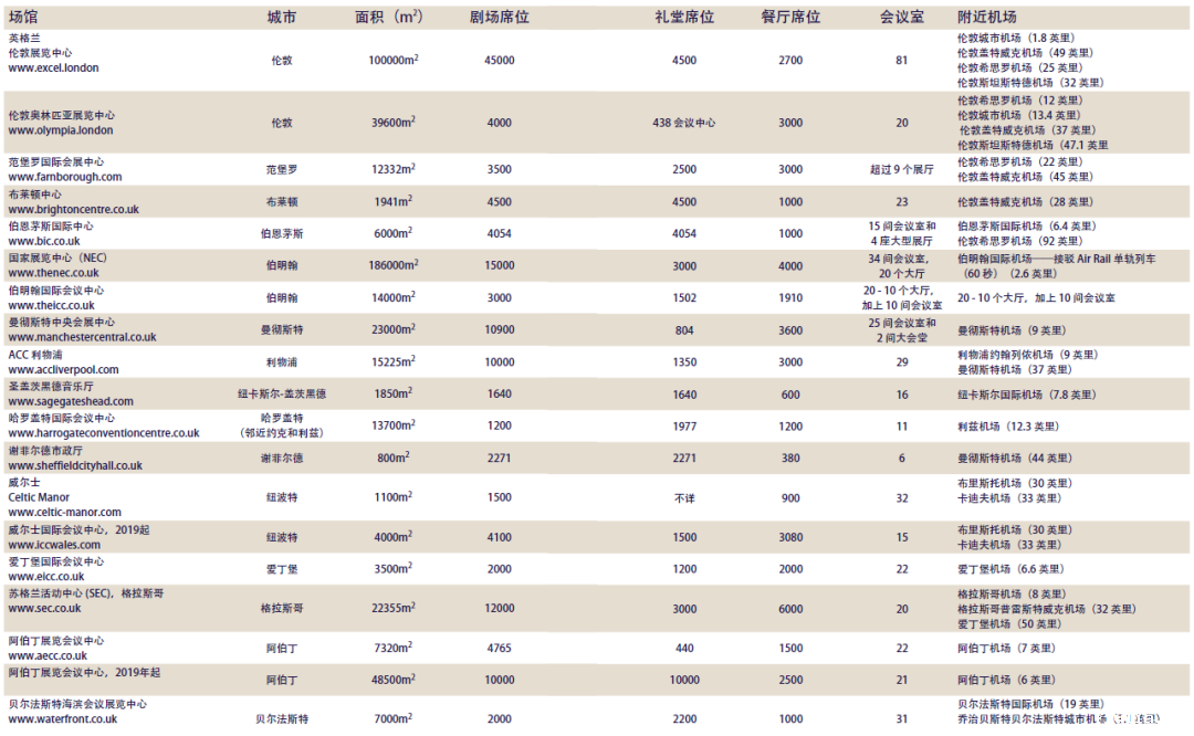 英国几乎每座主要城市均拥有专业的展览和会议中心,例如伯明翰的国家展览中心、格拉斯哥的苏格兰活动中心以及伦敦的展览会议中心,它们均曾举办过数千人参加的大型商务活动。英国还有众多独特而充满个性的场馆组合,包括巨型战舰、大学校园、体育场馆、古堡、剧院、乡村庄园、古老教堂等等。在每个地区,您都可以选择各种类型的商务活动场馆和服务提供商。目前,英国在商务活动行业有超过25,000家企业,其中不少是世界知名的公司,包括专业会议策划公司、发展促进机构、搭建商、制作公司,以及各种其他供应商,当然还有不同类型的场馆。